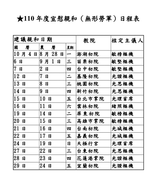 ●光理首席親自主持:1、台北地區(台北市)。2、台中海線地區(天極行宮)(負有玉靈殿三大特定任務)。